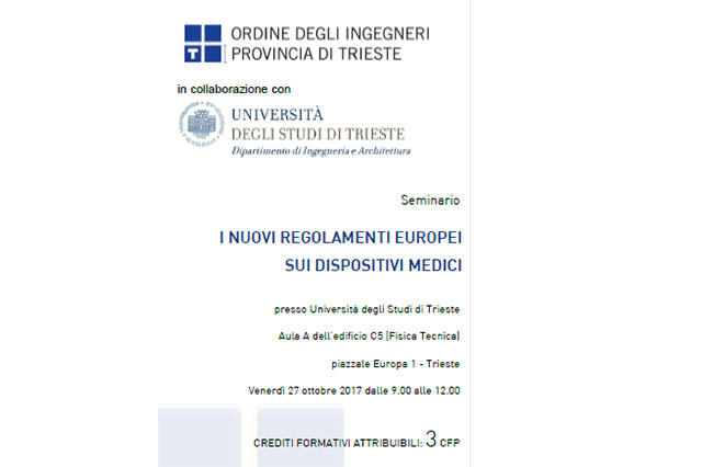 Seminario "I nuovi regolamenti europei sui Dispositivi Medici" L'Ordine degli Ingegneri della provincia di Trieste, […]